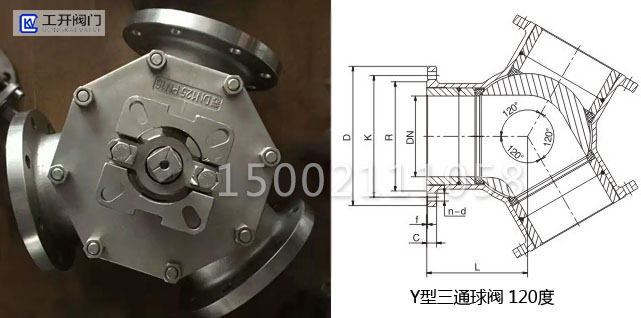 120度Y型三通球閥是一種閥體三個管口的流體通道之間被設(shè)計成互成120°夾角,球體與閥桿為一體結(jié)構(gòu),球體中有兩個成120°角并通過球中心點(diǎn)的通孔,這二個通孔的端口(球體端口)與閥體上的管口對應(yīng),并隨著球體在一百二十度之間的轉(zhuǎn)動實(shí)現(xiàn)進(jìn)口與任意出口導(dǎo)通或關(guān)閉,從而達(dá)到對兩種不同流向切換的閥門。本產(chǎn)品采用Y形結(jié)構(gòu)設(shè)計,減緩了流體沖進(jìn)球腔內(nèi)的流動速度,以防止顆粒狀物料受到損壞。