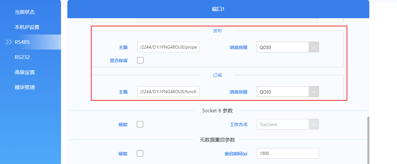2、配置MQTT的發(fā)布/訂閱主題