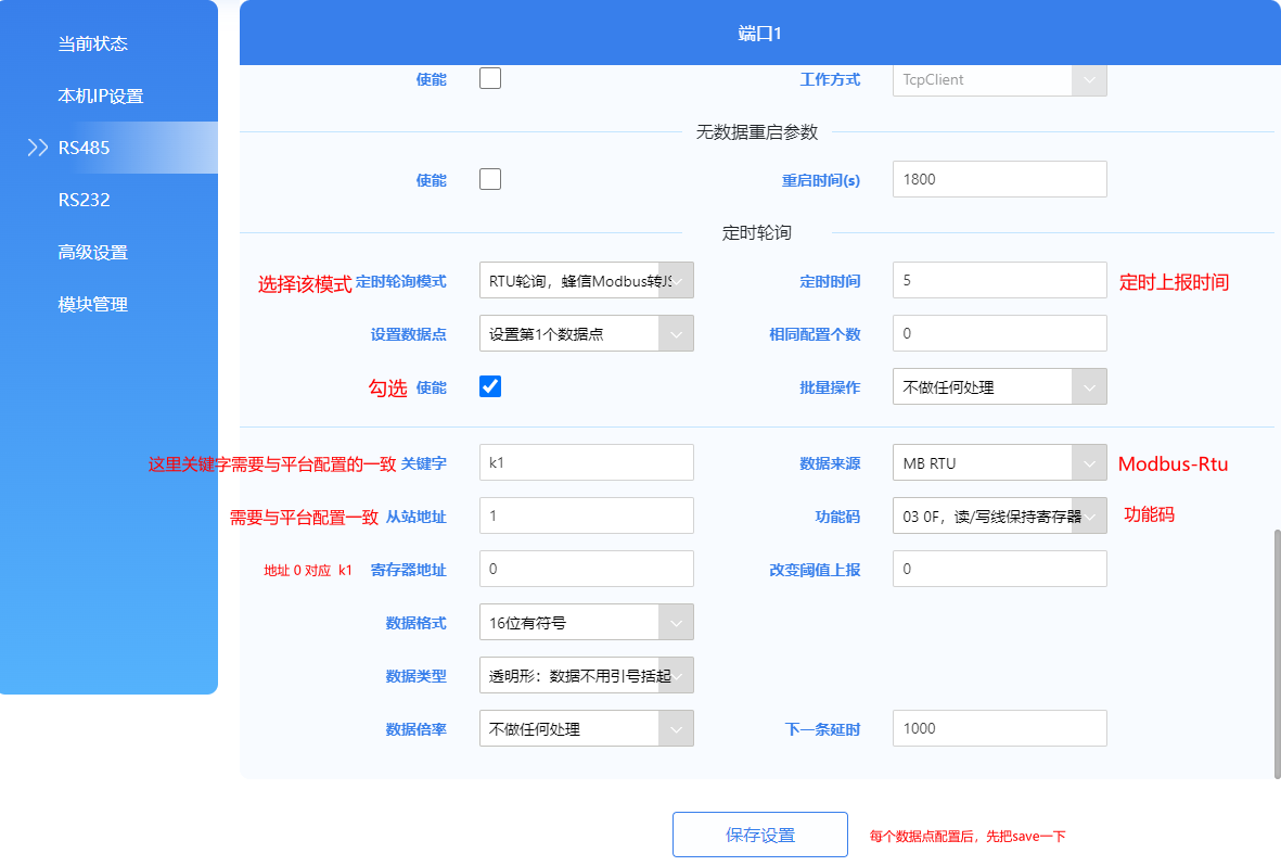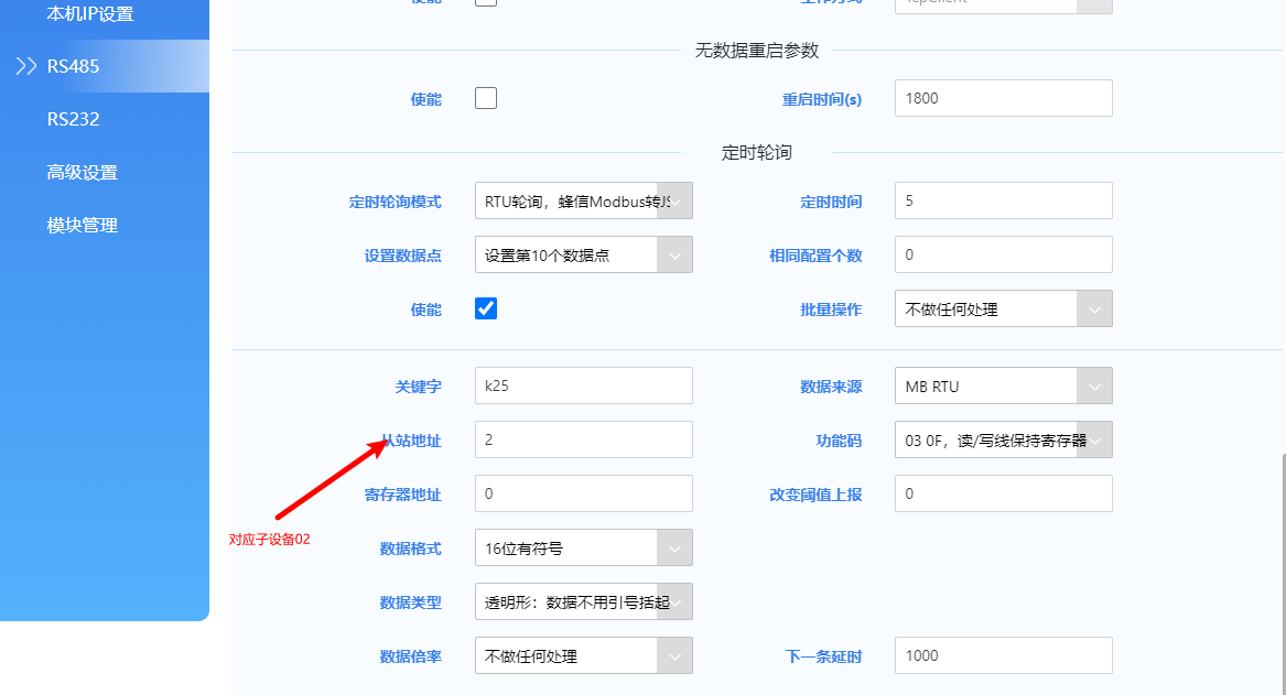 從站地址:需要與云平臺(tái)采集點(diǎn)模板的從機(jī)地址一致